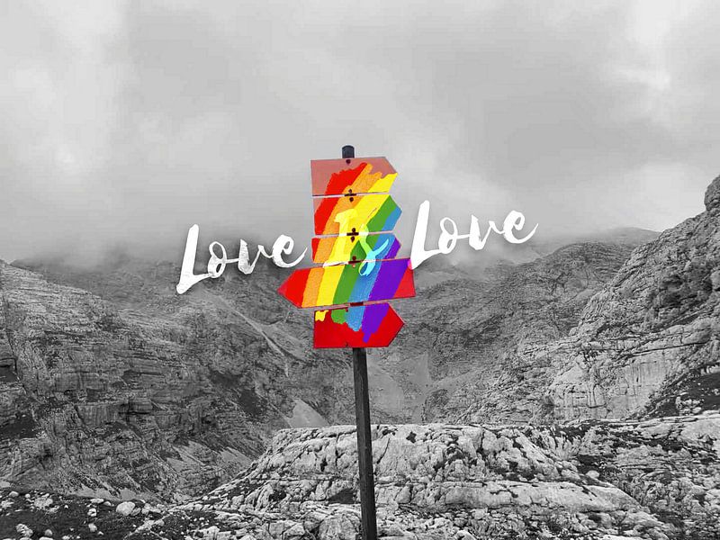Bestelle das digitale Kunst Bild Regenbogen-Liebeszeichen von Beautiful Company Studio Design (bcstudio) als Reproduktion auf Leinwand, Alu-Dibond, als Poster, Fototapete oder Acrylglasbild.
