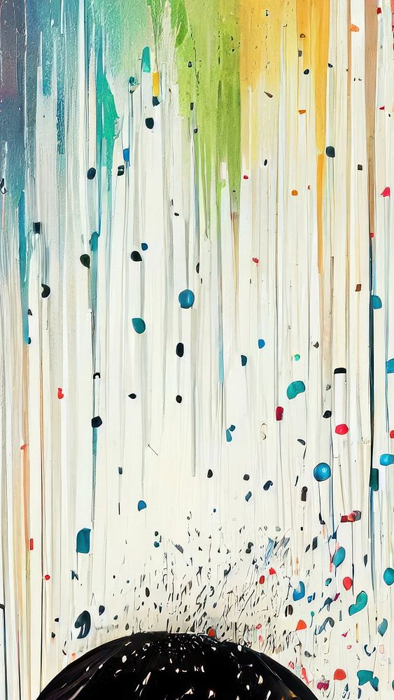 Das Gemälde zeigt einen einzelnen schwarzen Regenschirm. Über dem Schirm schwebt eine große, regenbogenfarbene Wolke, die sich über den größten Teil der Komposition erstreckt. Die Wolke ist in verschiedenen Rot-, Orange-, Gelb-, Grün- und Blautönen gehalten und scheint vor Energie zu pulsieren. Der schwarze Regenschirm steht in scharfem Kontrast zu den leuchtenden, kräftigen Farben der Wolke über ihm.