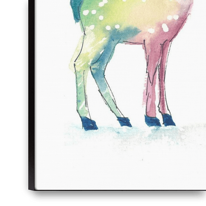 Regenbogen-Winterwunderland mit Rentier und Weihnachtsbaum in verschneiter Gelassenheit