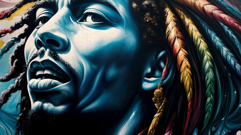 A.I. Ölporträt auf Leinwand eines schönen Rastamanns mit wildem Haar.