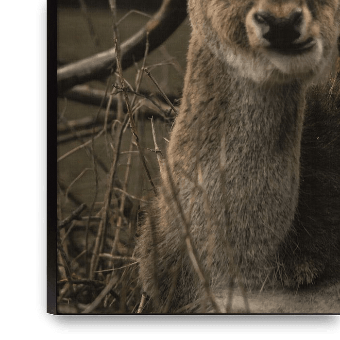 Bestelle dieses Porträt Rehkitz von Larsphotografie als Reproduktion auf Leinwand, Alu-Dibond, als Poster, Fototapete oder Acrylglasbild.