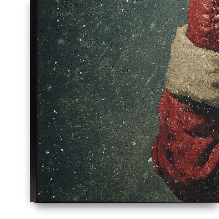 Details: Rentier malen, Rentier malen, Weihnachtsmalerei, Wintermalerei, surreale Malerei, Boxhandschuhe, Schnee, Rotmantel, Geweih, rot, schwarz, weiß, braun