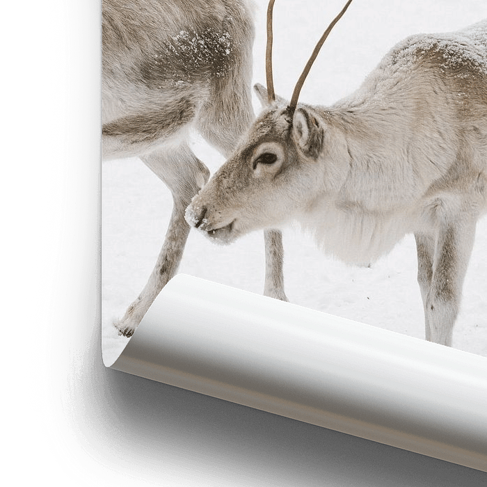 Bestelle dieses Landschafts-Wandbild Rentiere im Schnee in Finnisch-Lappland im Winter von Suzanne Spijkers als Reproduktion auf Leinwand, Alu-Dibond, als Poster, Fototapete oder Acrylglasbild.