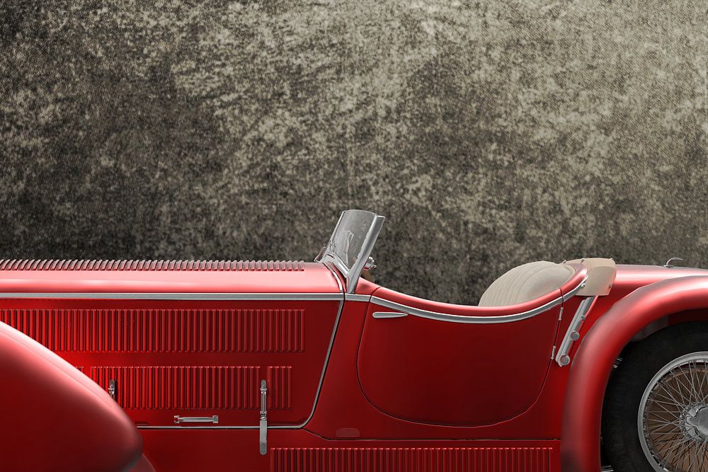 Retro Car red:Ein Oldtimer ist ein Fahrzeug, dessen Modell schon lange nicht mehr hergestellt wird.