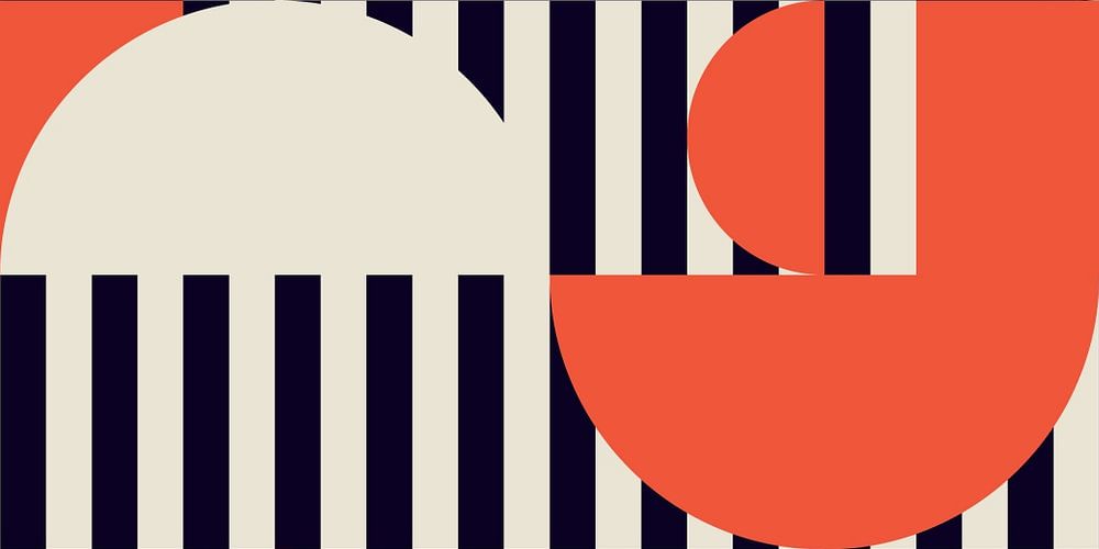 Modernes abstraktes geometrisches Kunstwerk mit Kreisen und Streifen im Retrostil. Pastellfarbenes grafisches Muster mit einfachen Formen.