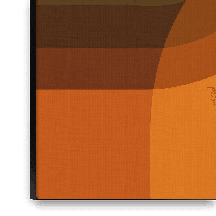 Warme, erdige Töne wie Braun und Orange fließen mit weichen Farbverläufen ineinander und bilden ein harmonisches Ganzes. Große geometrische Kurven dominieren die Komposition und setzen einen starken visuellen…