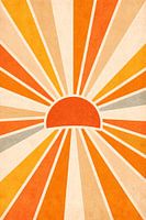 Ein warmes Kunstwerk im Retro-Stil mit auffälligen Strahlen und einem leuchtenden Sonnenuntergang in Vintage-Farben. Dieses minimalistische Design fängt den Charme der Mid-Century-Modern-Ästhetik ein und eignet sich perfekt, um Wohnzimmer, Schlafzimmer oder skandinavische Innenräume zu verschönern.