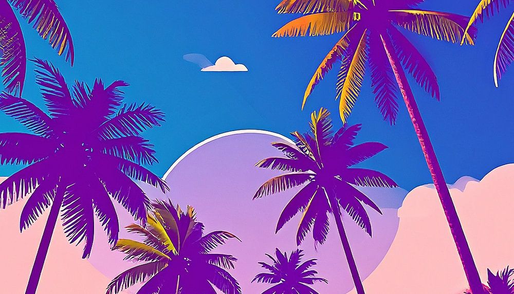 Retro Vintage Palmen mit Wolken und Blauen Himmel