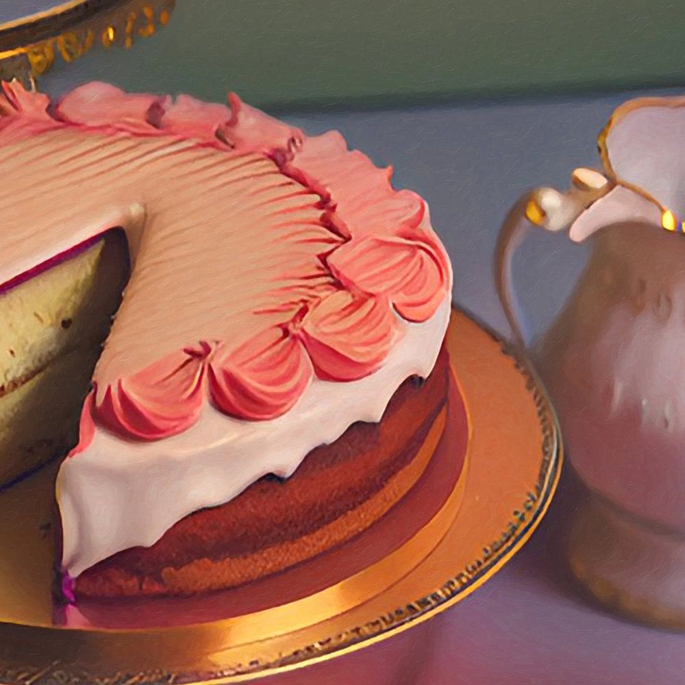 Ich erwarte niemanden, also habe ich einfach angefangen. Ein schönes Stillleben mit einer Rhabarber-Kirsch-Torte. Frischer Weichselbrei mit einer Schicht Kirschmarmelade dazwischen. Abgeschlossen mit einer glasierten Creme und Marzipan. Daneben ein Bankettteller mit marzipangefüllten Mozartkugeln aus Salzburg. Lecker!