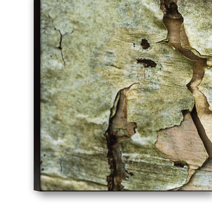 Dieses Bild ist eine Detailaufnahme der Rinde einer Goldbirke. Teile der Rinde lassen sich immer wieder lösen, wodurch ein fast abstraktes Bild entsteht.