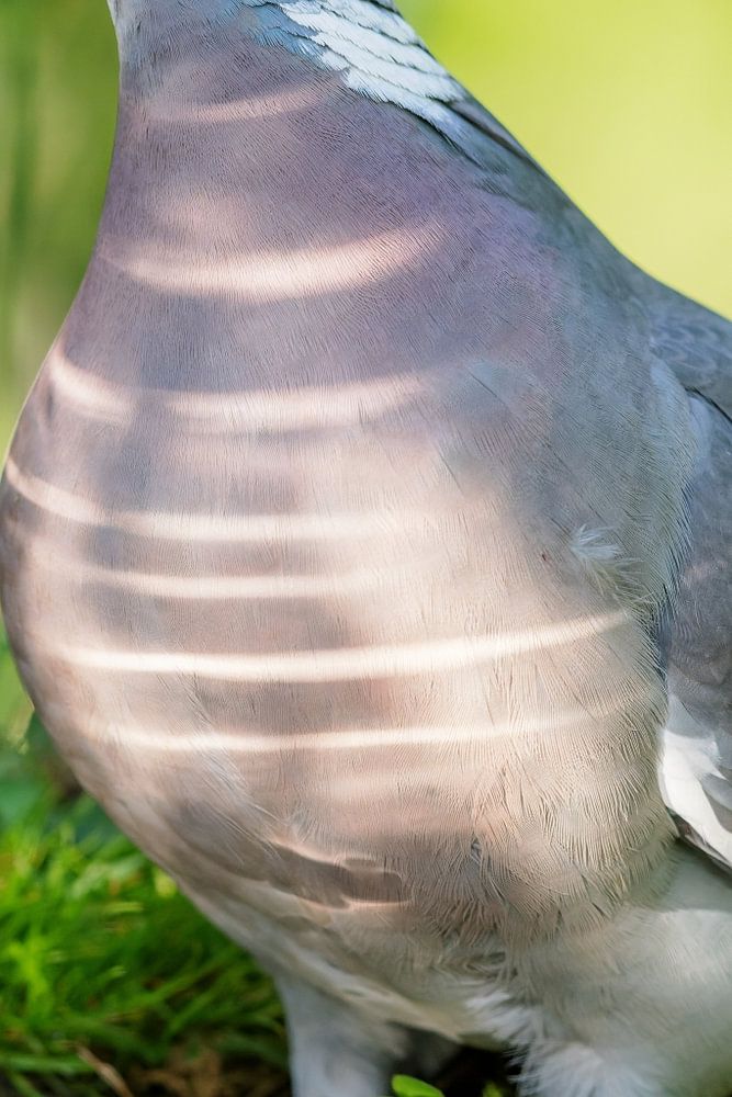 Ringeltaube (Columba palumbus) sitzt im Frühling am Ufer eines Teichs.