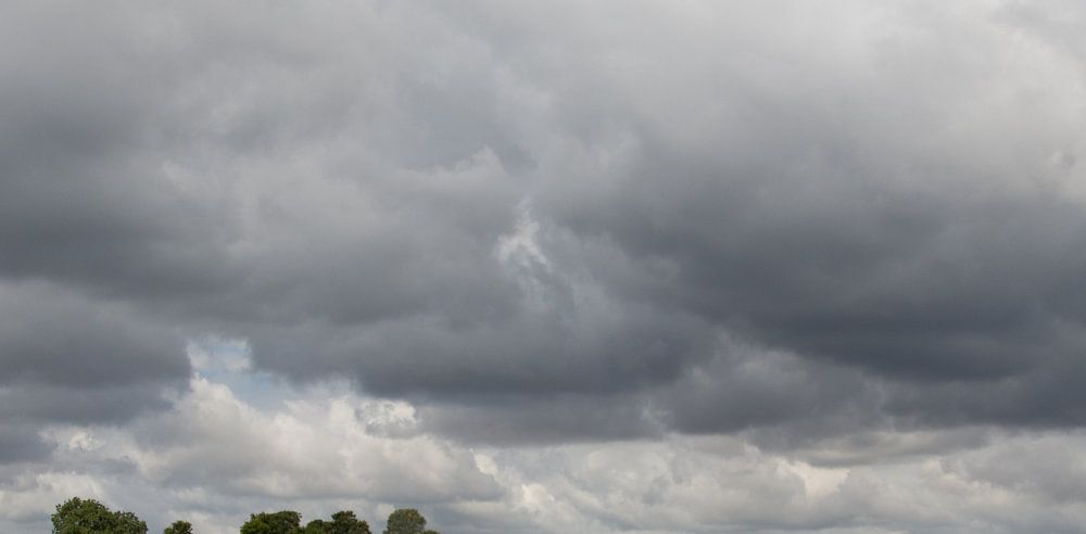 Dunkle Wolken über eine hügelige Landschaft von Burgund