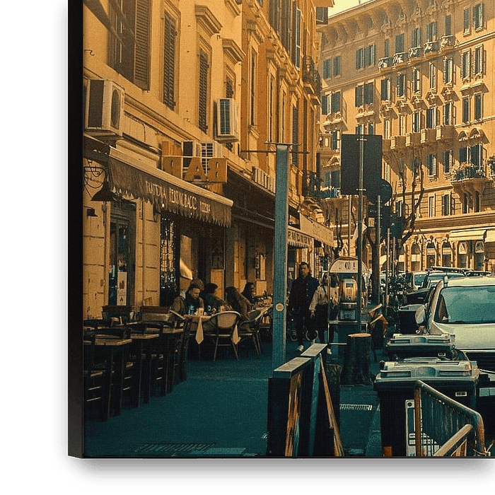 Ihre gewählte Kunst auf Leinwand, gespannt in einem Aluminiumrahmen. Schnell und einfach austauschbar für eine frische Ausstrahlung und ganz nach Ihren Wünschen.