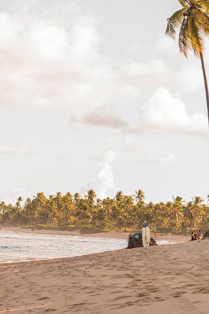 Dieser romantische Strand in Brasilien - Praia Do Forte - fühlte sich an wie ein Traum, es ist der atemberaubendste Ort, an dem ich je gewesen bin. Ich musste die Magie dieses Moments für immer festhalten. Wenn ich mir dieses Foto ansehe, kann ich immer noch den heißen, weichen Sand unter meinen Füßen und die warme Sonne auf meiner Haut spüren. Dieses Foto fühlt sich an wie ein schwüler Sommerabend.