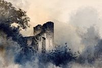 Romantische Ruine in einer nebligen Landschaft von BowiScapes – Kunst und urbane Wandgestaltung