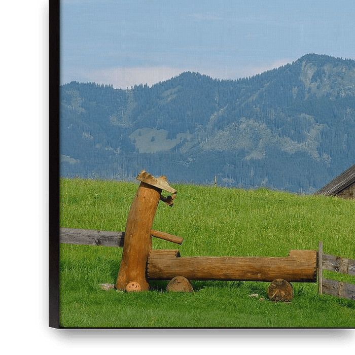 Bestelle dieses Landschafts-Wandbild Romantisches Allgäu: Kapelle im Hörnerdorf Bolsterlang von Gisela Scheffbuch als Reproduktion auf Leinwand, Alu-Dibond, als Poster, Fototapete oder Acrylglasbild.