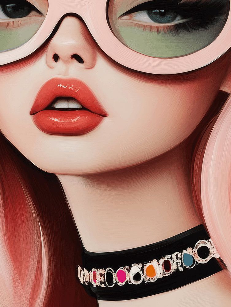 Pinke Haare, egal", niedliche und lustige Illustration eines Mädchens mit großer rosa Brille und rosa Haaren. Ein besonderer Blickfang für Ihr Interieur!