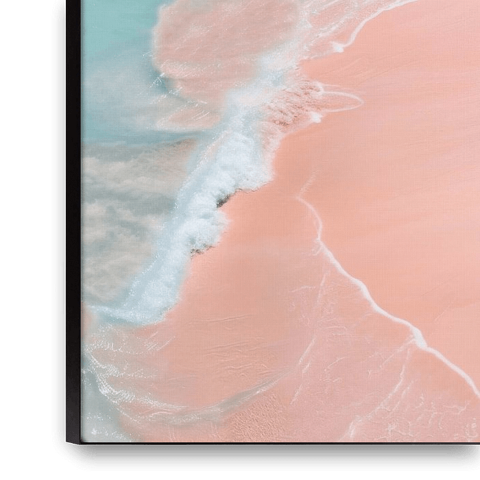 Bestelle dieses Landschafts-Wandbild Rosa Sandstrand aus der Vogelperspektive von Poster Art Shop als Kunstdruck auf Leinwand, Alu-Dibond, als Poster, Fototapete oder Acrylglasbild.