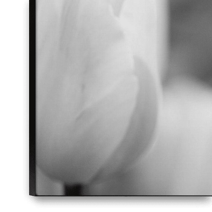 Bestelle dieses Landschafts-Wandbild Rosa Tulpe auf schwarzem und weißem Hintergrund von Jolanda Aalbers als Reproduktion auf Leinwand, Alu-Dibond, als Poster, Fototapete oder Acrylglasbild.