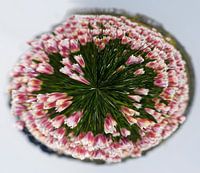 Niederlande, Blumenland. Im Frühling sehen Sie viele Tulpenfelder, besonders im Westen des Landes. Diese Tulpen werden von einem Panoramabild zu einem Kreis gedreht. Kreative fotografie