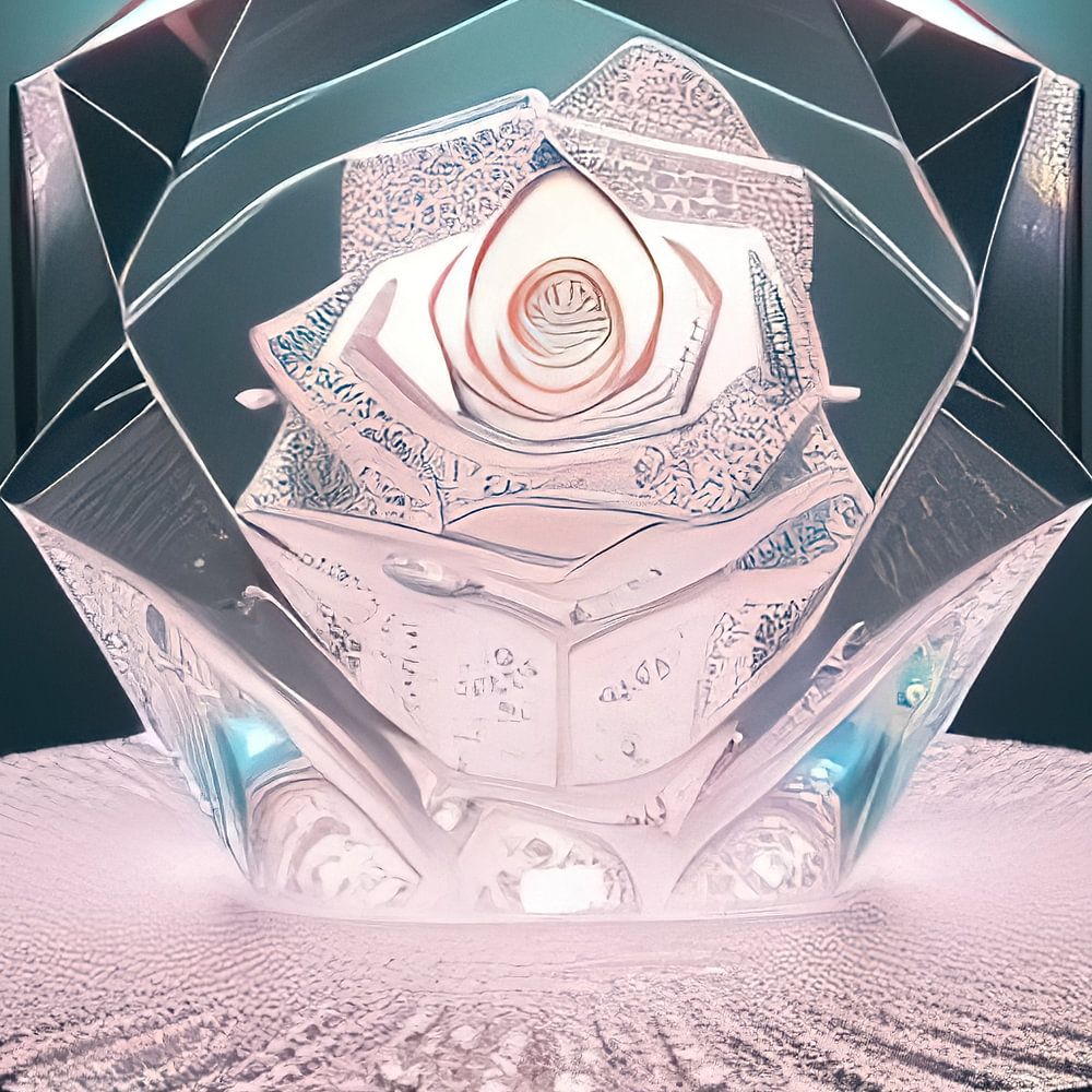 Rose in Kristall. Dieses Bild wurde von künstlicher Intelligenz (KI) erstellt.