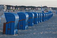 Über „Rostock-Warnemuende : Blaue Strandkörbe, Strand bei Abendsonne“ von Torsten Krüger