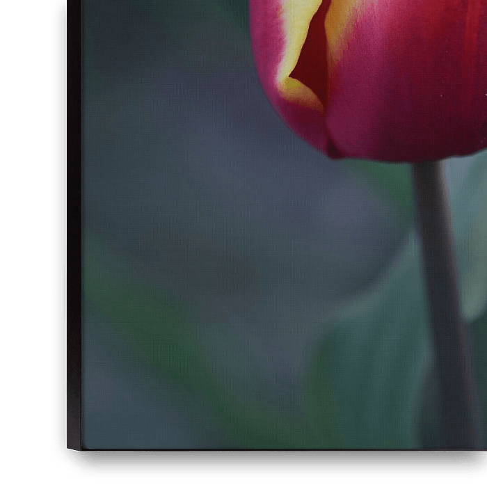 Bestelle dieses Blumen-Wandbild Rot-gelbe Tulpe in Nahaufnahme von John Leeninga als Reproduktion auf Leinwand, Alu-Dibond, als Poster, Fototapete oder Acrylglasbild.