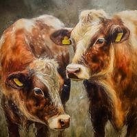 Bestelle dieses Kuh-Wandbild Rot gescheckte Kuh von Marjolein Deelen als Reproduktion auf Leinwand, Alu-Dibond, als Poster, Fototapete oder Acrylglasbild.