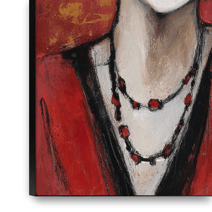 Bestelle dieses Porträt Rote Frau von Abstraktes Gemälde als Reproduktion auf Leinwand, Alu-Dibond, als Poster, Fototapete oder Acrylglasbild.