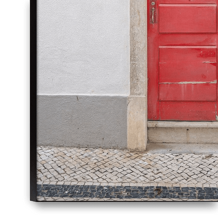 Rote Tür Nr. 7 in Ericeira, Portugal - minimalistische Straßen- und Reisefotografie von Christa Stroo photography