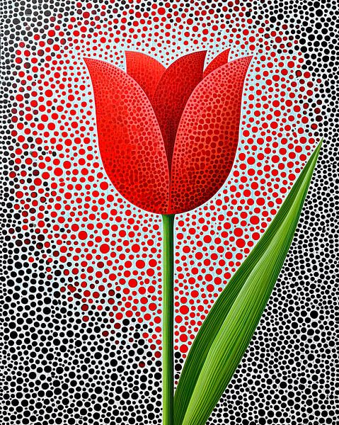 Rote Tulpe in moderner Punktkomposition von May