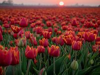 Bestelle dieses Landschafts-Wandbild Rote Tulpen auf einem Gebiet von Martijn Tilroe als Reproduktion auf Leinwand, Alu-Dibond, als Poster, Fototapete oder Acrylglasbild.