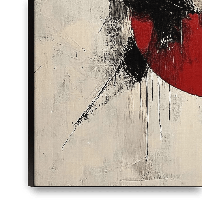 Bestelle dieses abstrakte Wandbild Roter Kreis | Abstraktes Farbspiel von Zen und Mehr als Reproduktion auf Leinwand, Alu-Dibond, als Poster, Fototapete oder Acrylglasbild.