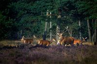Bestelle das Foto Rothirsch mit seinem Rudel in der Brunftzeit von Evert Jan Kip als Reproduktion auf Leinwand, Alu-Dibond, als Poster, Fototapete oder Acrylglasbild.