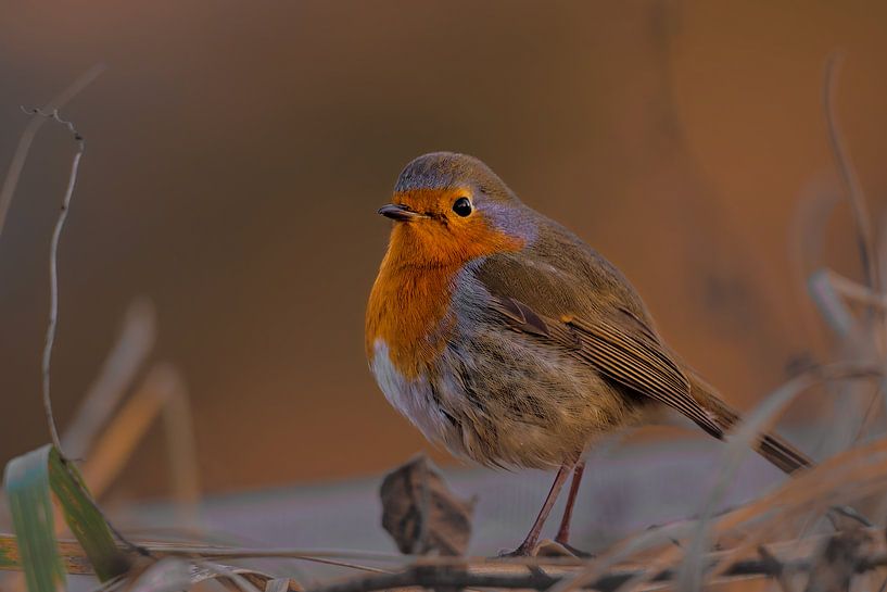 Bestelle dieses Vögel Wandbild Rotkehlchen im Abendlicht von Skarvaan by Benedict Gertz als Reproduktion auf Leinwand, Alu-Dibond, als Poster, Fototapete, ArtFrame oder Acrylglasbild, maßgefertigt in höchster Qualität.