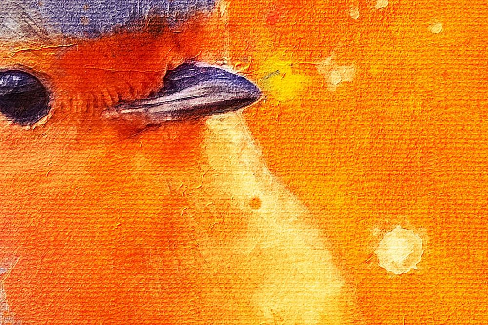 Digitales Gemälde eines Rotkehlchens vor einem orangefarbenen Hintergrund.
