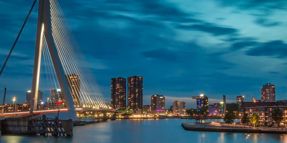 Erasmus-Brücke in Rotterdam fotografierte von Rotterdam Zuid bei Sonnenuntergang.