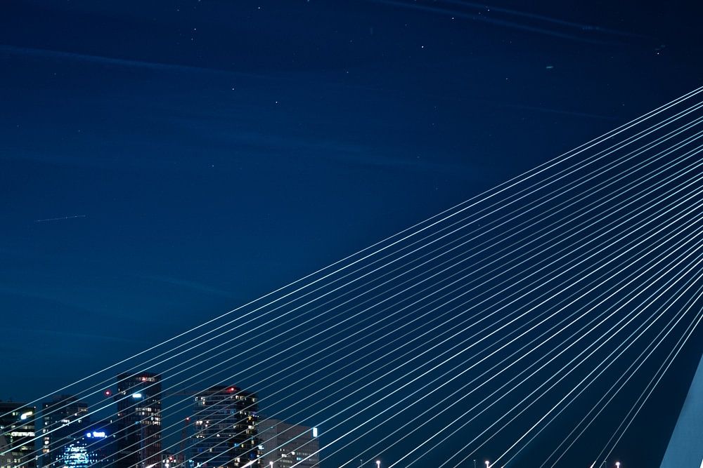 Eines der schönsten Merkmale von Rotterdam (wenn Sie mich fragen): die Erasmusbrücke. Und das noch unter den Sternen tief am Abend. Dank der langen Verschlusszeit sind Details wie Sterne in diesem Bild deutlich sichtbar.
