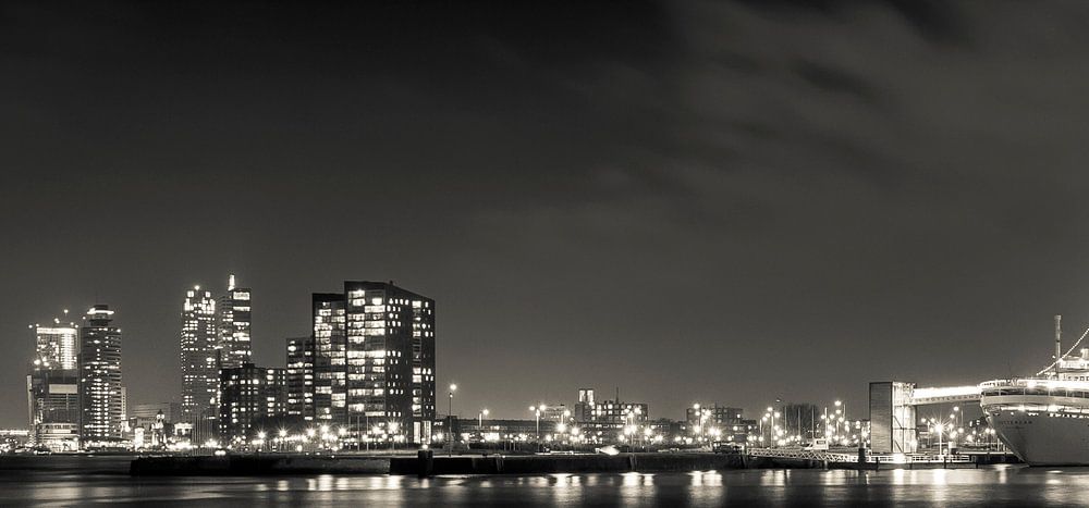 The SS Rotterdam and the Euromast, which are two of Rotterdam's most famous icons, in a panorama.