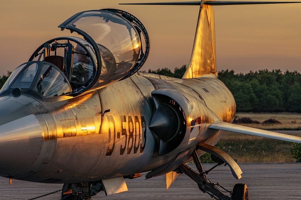 Die TF-104G ist eine von mehreren Versionen des Starfighters. Es handelt sich um eine kampffähige Trainerversion, die auch bei der Royal Air Force im Einsatz war. Das Flugzeug auf dem Bild ist die D-5803, die bis Ende 1984 im Einsatz war.