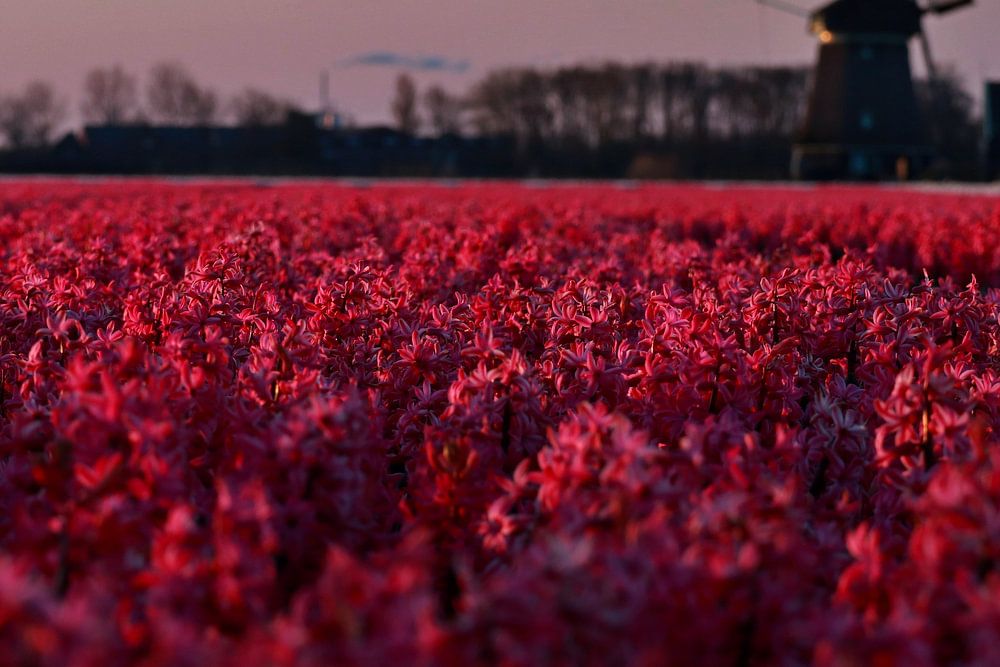 Hyacinten veld voor molen O-T bij Zonsopgang