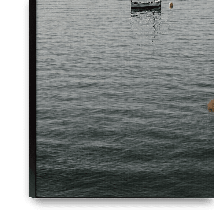 Bestelle das Foto "Ruhiges Meer mit traditionellem Boot", Summer Vibes. von Funky Lemons als Reproduktion auf Leinwand, Alu-Dibond, als Poster, Fototapete oder Acrylglasbild.