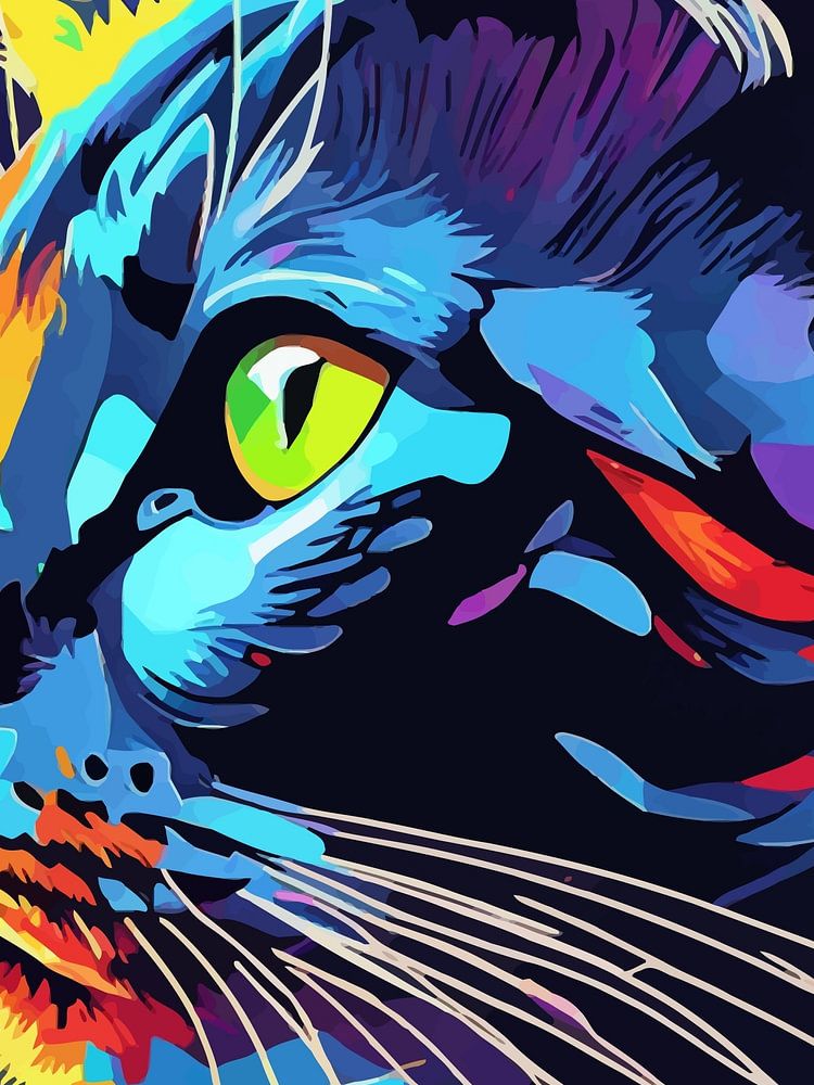 Russian Blue Pop Art ist eine zeitgenössische Kunstrichtung, die durch leuchtende, kräftige Farben, grafische Formen und stilisierte Darstellungen der Katzenrasse Russian Blue gekennzeichnet ist. In diesen Stil fließen häufig Elemente der Popkultur und Anspielungen auf die russische Folklore ein. Durch die Verwendung leuchtender Farben und moderner Designtechniken entsteht eine dynamische und visuell beeindruckende Darstellung der geliebten Katzenrasse.