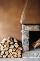 Bestelle dieses Landschafts-Wandbild Rustikaler Kamin mit Holzscheiten von Imperial Art House als Reproduktion auf Leinwand, Alu-Dibond, als Poster, Fototapete oder Acrylglasbild.