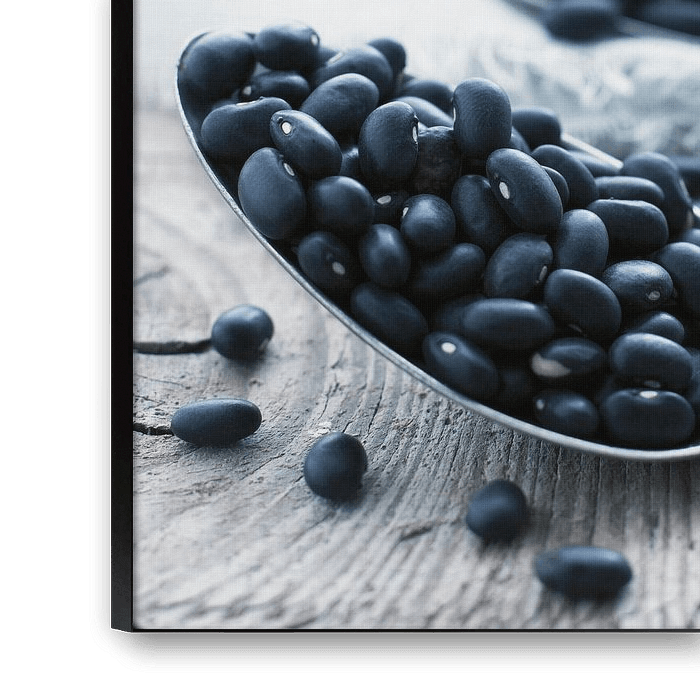 Essen, Kochen, Küche, Bohnen, schwarze Bohnen, drei, Stilleben, Löffel, Löffel, Hülsenfrüchte, Jahrgang, Retro, grau, vegetarisch, vegetarisch