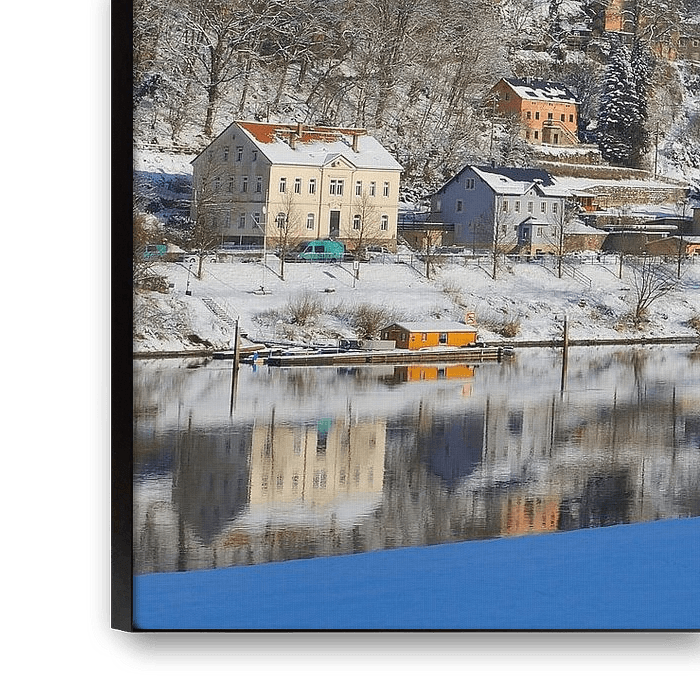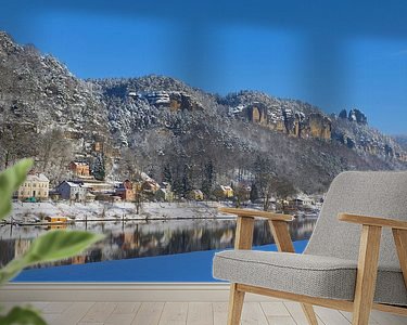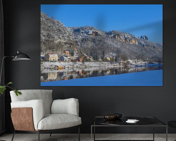 Die Elbe bei Bad Schandau im Winter mit Blick in die Schrammsteine.