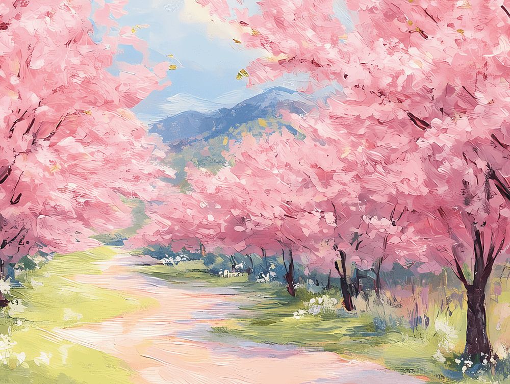 Ich bin den Weg mit vielen Sakura hinuntergegangen.