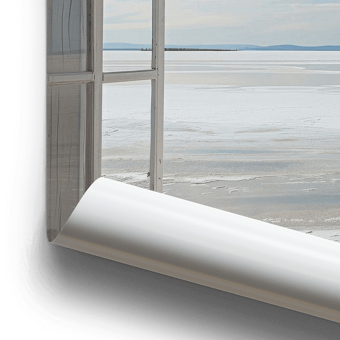 Lassen Sie sich von der friedlichen Schönheit eines weiten Salzsees inspirieren, eingefangen in diesem eindrucksvollen Wandbild, das eine minimalistische Szene durch ein offenes Fenster zeigt. Dieses Kunstwerk eignet sich hervorragend für Büros und Wohnräume, um eine klare und inspirierende Umgebung zu schaffen. Perfekt für Naturfreunde…