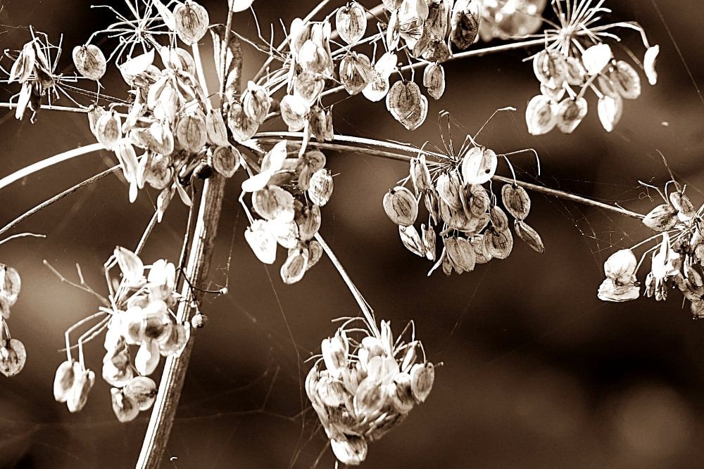 Blühendes Samtkraut ist ein spannendes Spiel zwischen Samen und Zweigen.