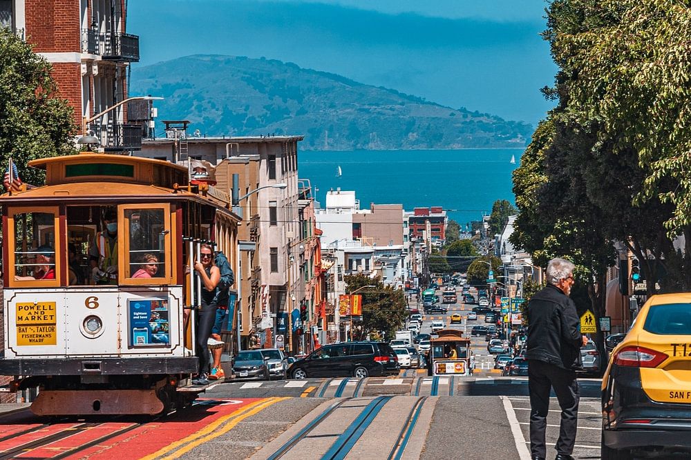 Wer kennt sie nicht: Die berühmten Trolley-Trams in San Franisco, Kalifornien. Die Stadt ist bekannt für ihre Straßenbahnen, die die hügelige Landschaft der Stadt mit ihrem fröhlichen Aussehen erfüllen.
